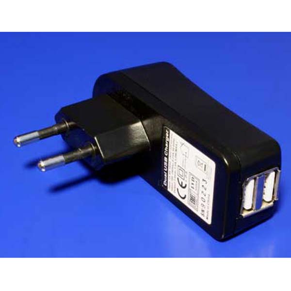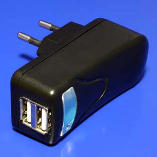Napájecí adaptér síťový (230V) - 2x USB, 5V/ 2A, černý -napájení zařízení, které používají jako zdroj napájení USB port * Konektory : dvoupólová vidlice / 2x USB A(F) * Napájení : Síťový rozvod 100 - 240V / 50 - 60Hz * Spotřeba : výstup maximálně 10W * Vstupní napětí: AC 100-240V / 50-60Hz * Výstupní napětí: 5V/2A (dohromady pro oba porty) * Indikace : 1x LED * Barva : černá * Materiál : plast * Rozměry : 80 x 66 x 32mm