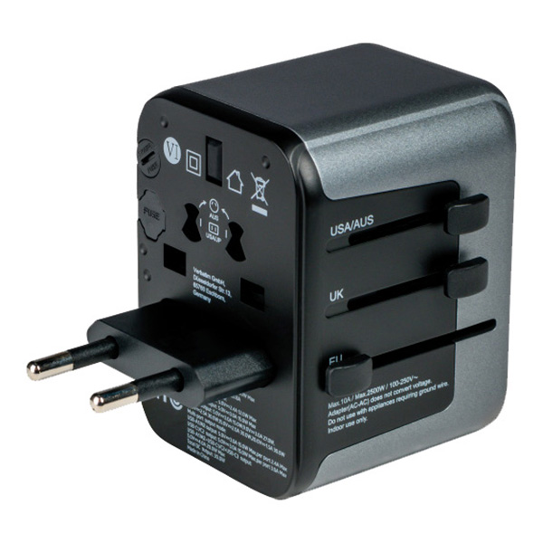 Univerzální cestovní adaptér od společnosti Verbatim lze používat ve více než 180 zemích – ať už se vydáte kamkoli, vaše zařízení nikdy nezůstanou bez energie. S tímto univerzálním adaptérem s více zástrčkami se připojíte k jakémukoli místnímu elektrickému zdroji. Svá elektronická zařízení náročná na energii, například notebooky a akumulátory do fotoaparátů, tak dobijete kdekoli na světě. Porty USB-C a USB-A na spodní straně pohodlně nabijete všechna svá zařízení USB včetně chytrých telefonů, Bluetooth reproduktorů, tabletů, powerbank a čteček Kindle. Upozornění: