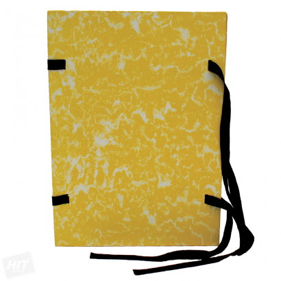 Spisové desky s tkanicí knihařsky potažené. Vyrobené ze strojní lepenky 1320 g, knihařský potah vnějších desek, uvnitř papírový výlep. Pevné vázací keprové tkanice. Formát A4, barva žlutá.