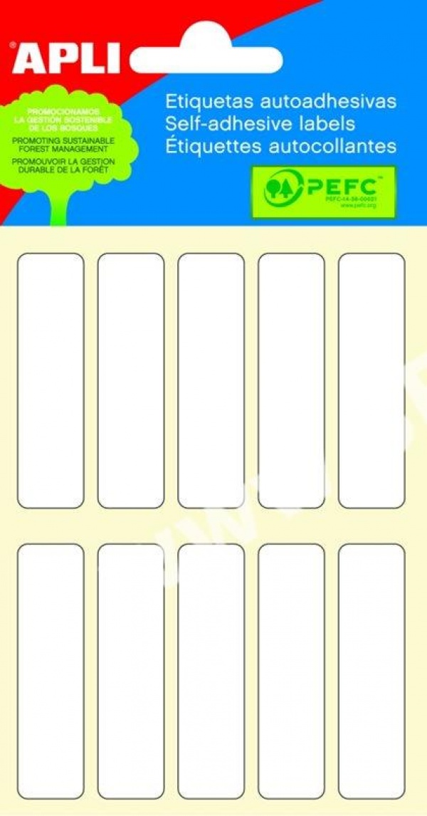 Samolepící etikety na arších formátu A6. Balení obsahuje 6 archů etiket 16 x 22 mm, celkem 96 kusů etiket. Barva bílá.