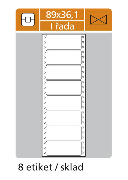 Bílé samolepicí etikety na podkladovém papíru s vodící boční perforací. Pro použití v jehličkových tiskárnách.