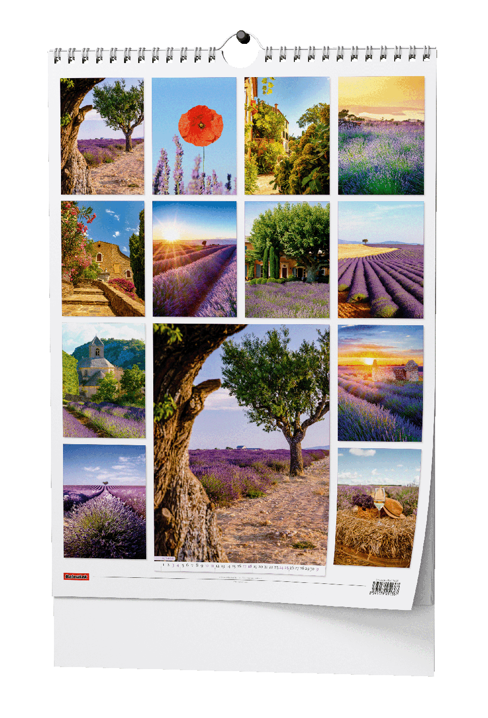 Nástěnný kalendář s nádhernými obrázky Provence. 320x450 mm, 14 stran Papír: křída lesk, 135 g/m2 Obálka: křída lesk 150 g/m2 Karton je z kvalitní bílé lepenky Dvojitá kovová spirála "twin wire" po celé šířce kalendáře s háčkem pro zavěšení Baleno v průhledném sáčku s průhmatem.