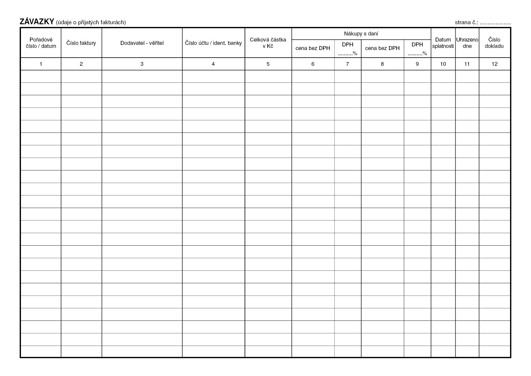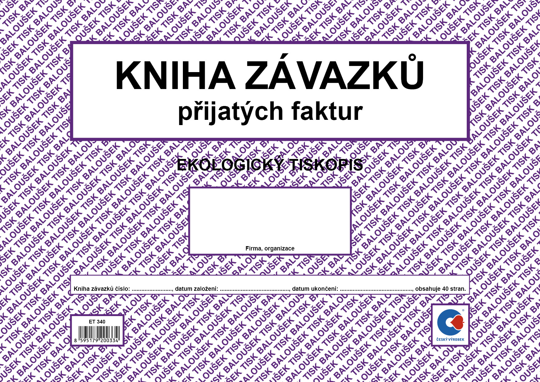 Kniha závazků (došlých/přijatých faktur), A4, 40 stran, BAL ET340