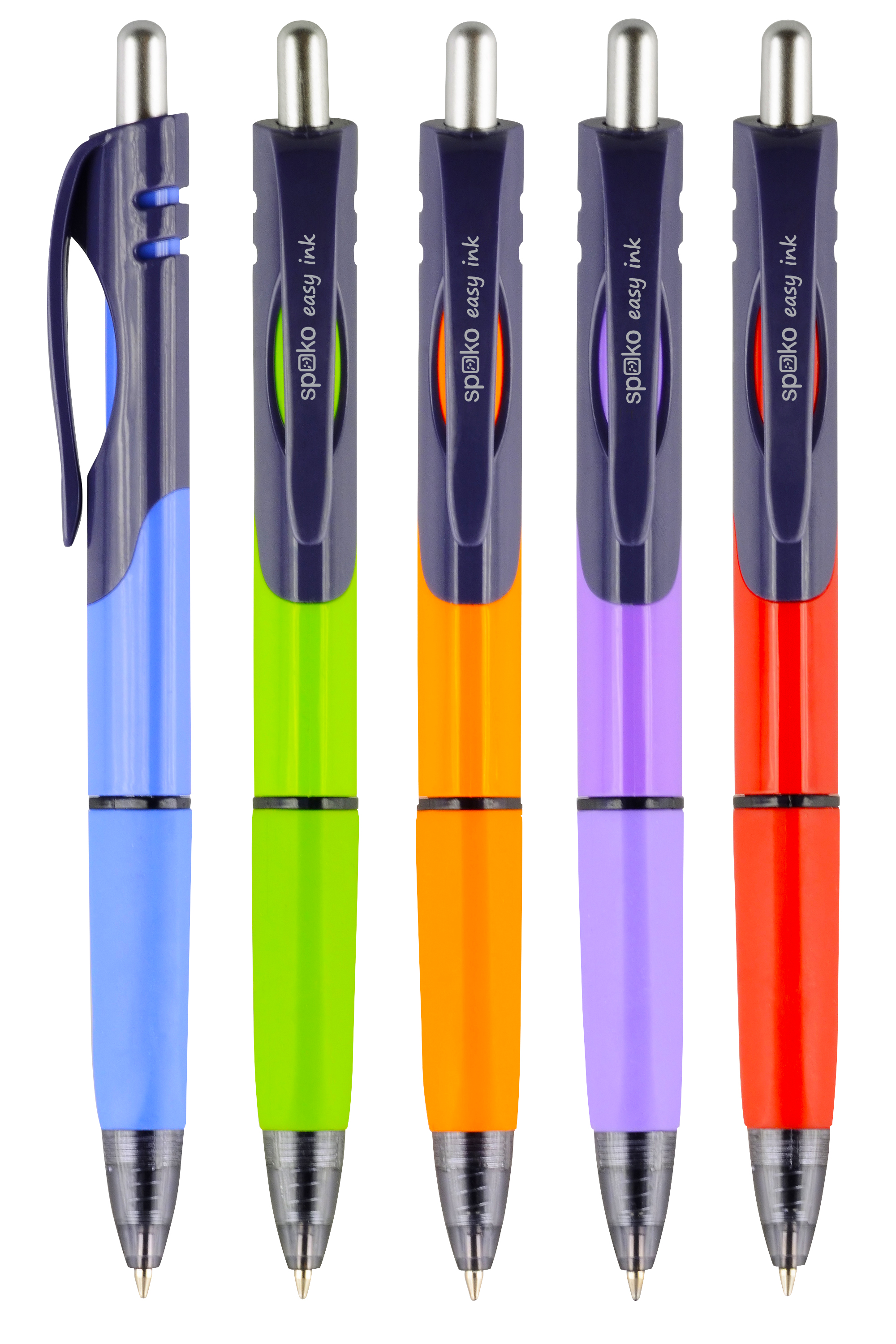 Celoplastové kuličkové pero s pogumovaným úchopem. Náhodný výběr barev. -ergonomické pero s trojúhelníkovým průřezem -mix pastelových barev -náplň "Easy ink" – inkoust s nízkou viskozitou pro pohodlnější a plynulejší psaní - tuha krásně klouže po papíru. -modrá náplň se šířkou stopy 0,7 mm