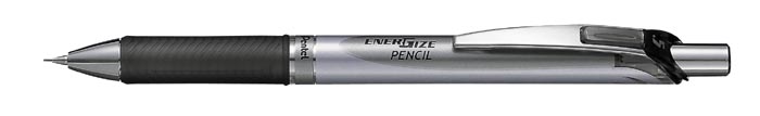 Pentelka o síle 0,5 mm ve stříbrném provedení. Kovový klip, posuvný systém, který umožní samovolné vysouvání tuhy. Pogumovaný barevný grip.