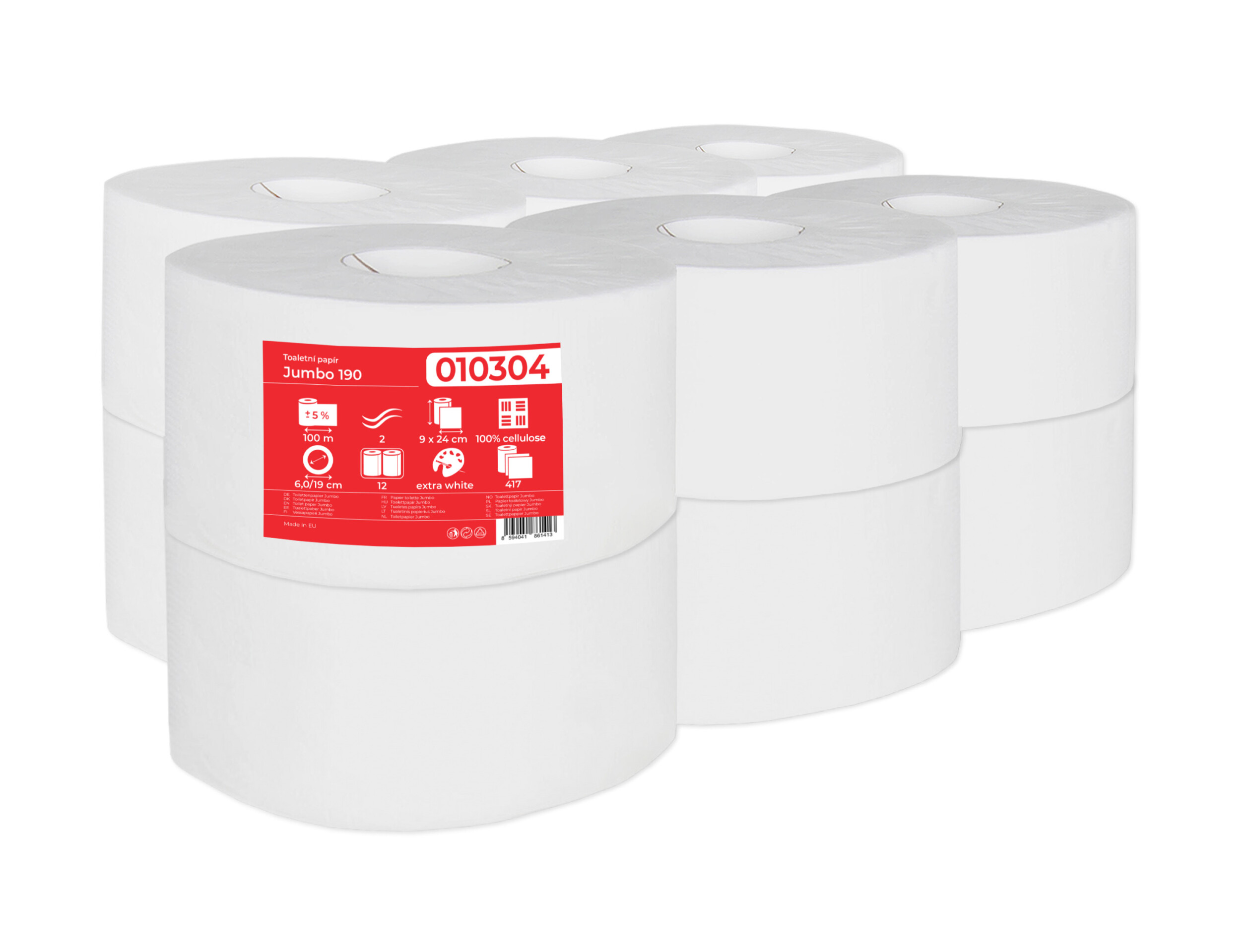Papír toaletní Jumbo 2vrstvý bílý role 19cm bal.12 ks 010304