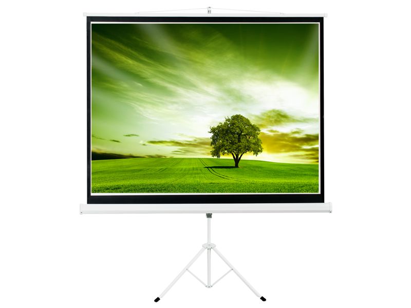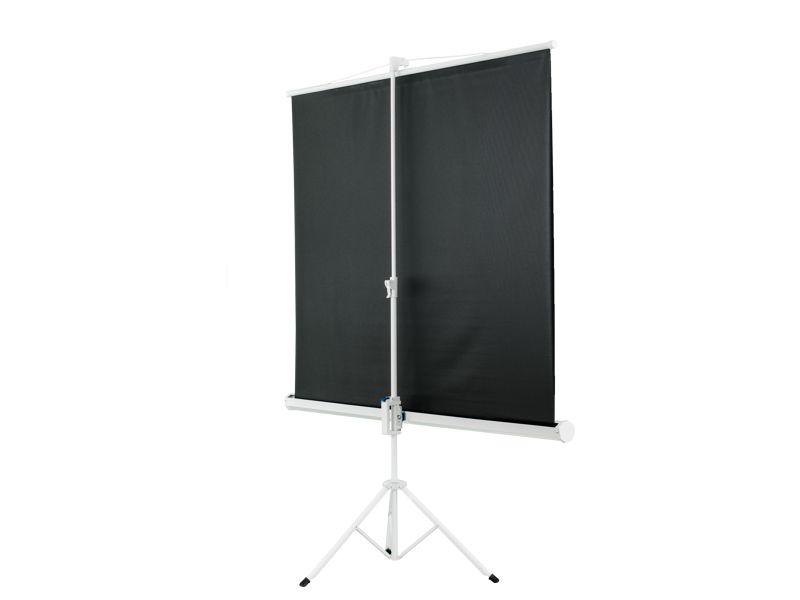Mobilní projekční plátno vhodné pro digitální a zpětné projektory. Velmi stabilní základ na třech nohách, formát 4:3, matně bílé s černým orámováním.