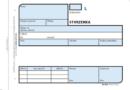 Pro podvojné účetnictví. Nepropisující tiskopis. Blok 100 listů. Formát A6. Modrá obálka. Číslovaný.