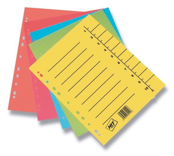Registrační listy do pořadače z pevného kartonu 240 g/m2. Multiperforace pro založení do pákového i kroužkového pořadače. Mix 5 barev. 100 ks v balení.