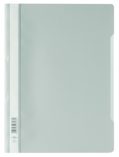 Rychlovazače z kvalitního polypropylenu, vhodné pro zakládání děrovaných dokumentů formátu A4. Přední strana průhledná, zadní barevná, bílý papírový zasunovací štítek podél hřbetu k popisu obsahu. Barva šedá.