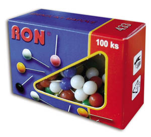 Špendlíky mapové s velkou barevnou kulatou hlavičkou, mix barev (100 ks)