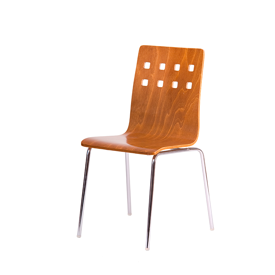 Dřevěná židle. Lakovaná překližka, plastové kluzáky na ochranu podlahy, povrchová úprava kostry - chrom, 2 roky záruka. Technické parametry: Hmotnost: 5.00 kg, Nosnost: 100 kg, Šířka: 41 cm, Výška: 87 cm, Hloubka: 38 cm