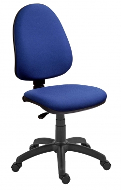 Kancelářská židle s nastavením úhlu opěráku, s nastavením opěráku ve vodorovném i svislém směru, plynový píst k nastavení výšky sedáku. Bez područek. Váha 13kg, výška sedáku 46-58cm.