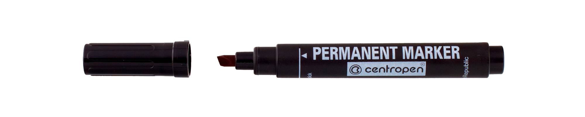 Permanentní značkovač, který díky své speciální inkoustové náplni vydrží i 14 dní otevřený a nevyschne. Píše na papír, kartón, dřevo, kov, umělou hmotu, sklo, porcelán i kámen. Značkovač je vodostálý, rychleschnoucí, nerozmaže se, má neutrální vůni a klínový hrot, šíře stopy 2-5 mm. Inkoust na alkoholové bázi.
